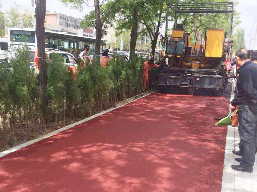 包頭巴彥塔拉大街道路改造項目彩色瀝青混合料試驗段鋪筑成功