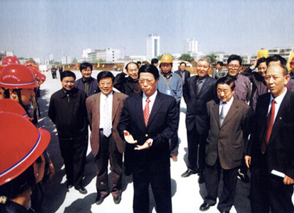 原中共中央總書記、國家主席、中央軍委主席胡錦濤2005年10月視察南京長江三橋建設(shè)并親切接見集團(tuán)公司干部職工。