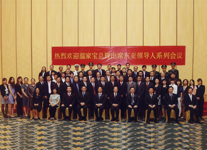原中共中央政治局常委、國務(wù)院總理溫家寶2010年10月在越南親切接見集團(tuán)公司河內(nèi)至海防高速公路參建員工代表并合影。