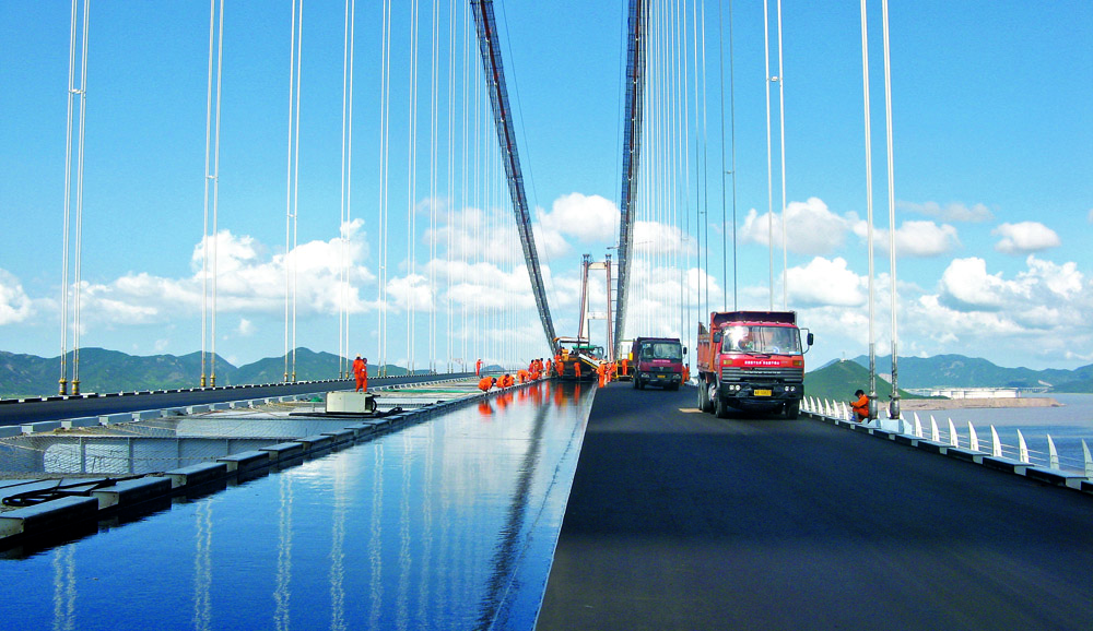 從中國首座環(huán)氧瀝青混凝土鋪裝結(jié)構(gòu)的南京長江二橋開始,公司實(shí)施多座大型橋梁的環(huán)氧瀝青混凝土鋪裝施工。公司編制了國家級(jí)工法一《環(huán)氧瀝青混凝土鋼橋面鋪裝施工工法》系統(tǒng)性規(guī)范國內(nèi)同類型鋪裝施工。公司站在科技前沿,結(jié)合中國氣候條件、車流、車載等綜合因素,形成一套先進(jìn)的復(fù)合澆注式瀝青混凝土鋼橋面鋪裝施工工藝,獲得國內(nèi)外專家贊譽(yù),并將復(fù)合澆注式瀝青混凝土鋪裝應(yīng)用于南京長江四橋。